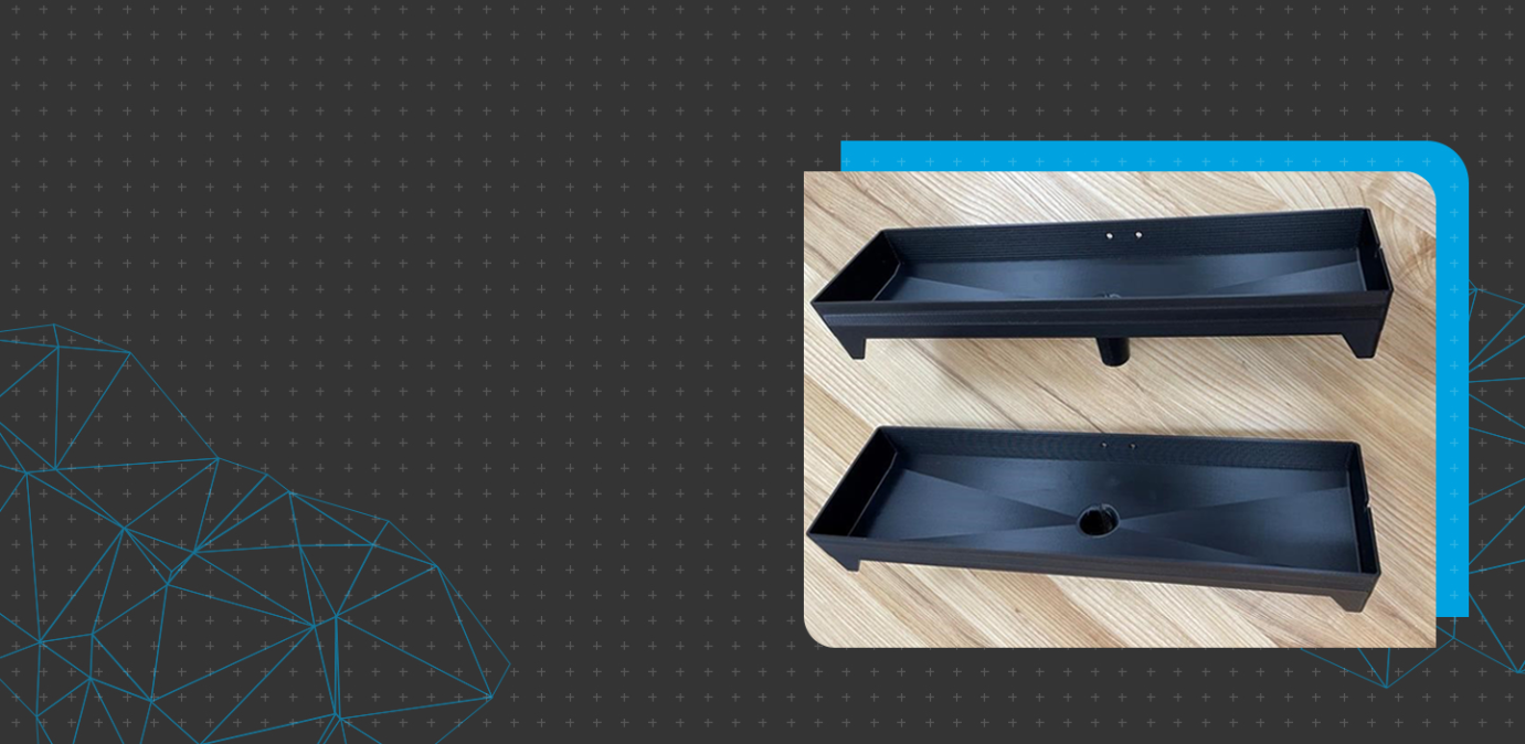 A common feature of HVAC systems is the drain pan that collects and redirects moisture removed from the air. New systems require multiple iterations of prototype drain pans to validate fit and function before locking in the final design. Outsourced 3D printed prototypes cost $485; the quote for one injection molded prototype was $22,200 with a one-month lead time.