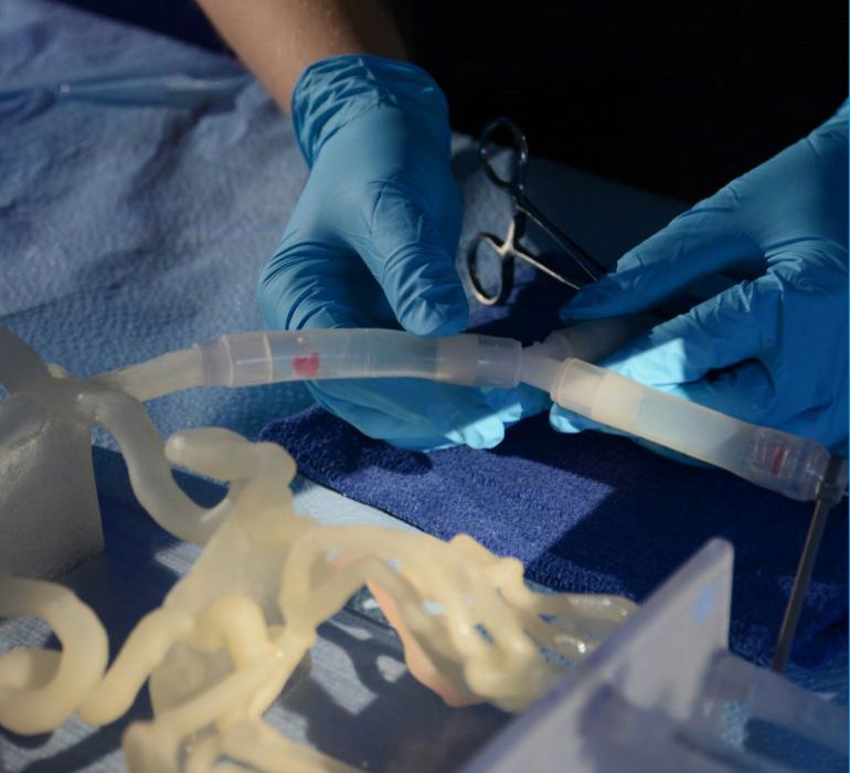 A compact platform that enables the creation of both visual and functional anatomical models with high biomechanical precision and realism.To create realistic synthetic vascular models for medical device development, physician training, surgical demonstration, and procedural planning, arteries must replicate how native tissue expands and contracts as pulsatile pressures are applied. Mimicking arterial distensibility, or an artery’s ability to expand in response to an increase in blood pressure, is a key biomechanical attribute.