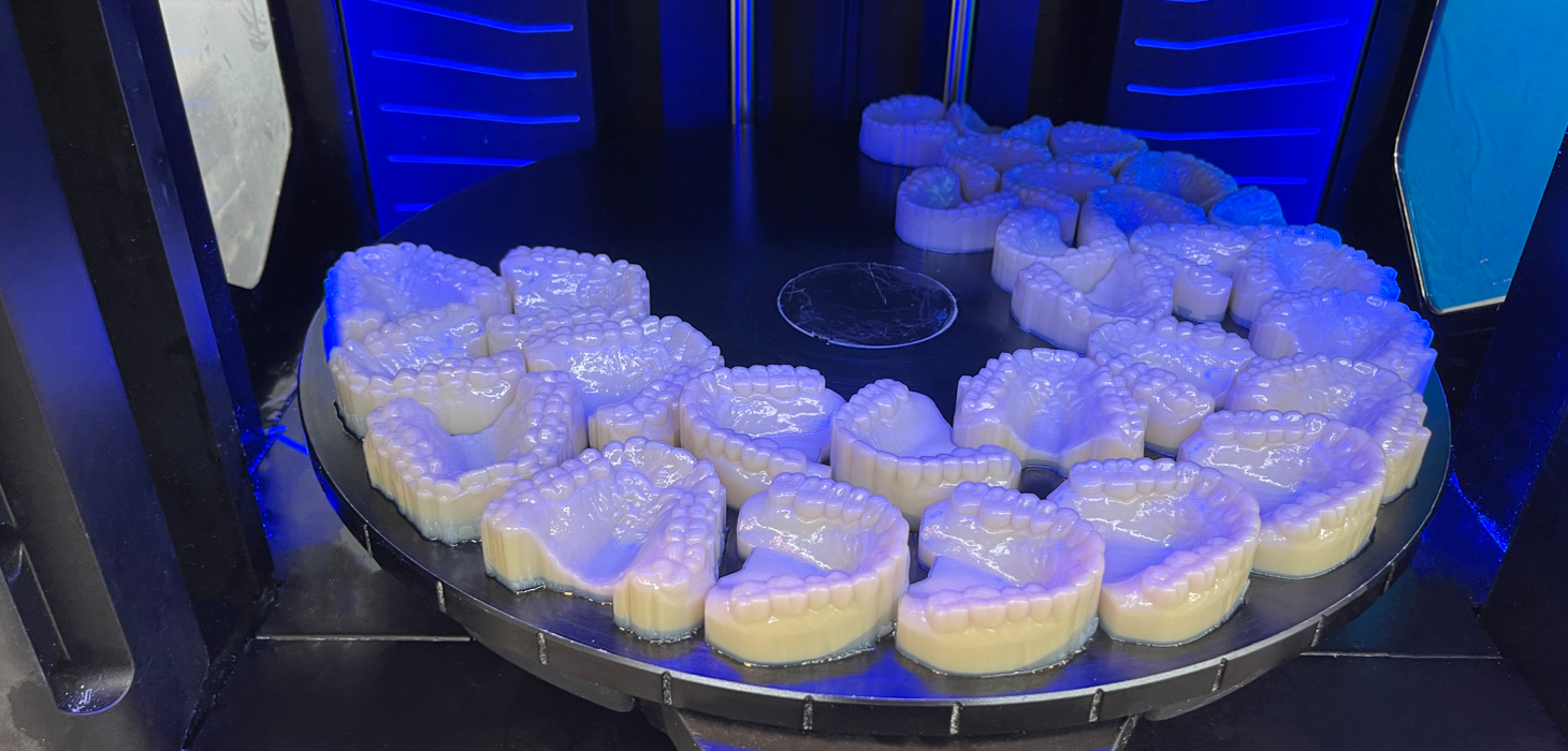 PolyJet, la tecnología de inyección patentada de Stratasys, se introdujo en la industria dental en 2005 y fue adoptada principalmente por grandes laboratorios dentales y fabricantes de alineadores. Para satisfacer las necesidades cambiantes de la industria, Stratasys desarrolló la J5 DentaJet, una impresora dental 3D con capacidades de impresión de varios materiales y una bandeja de impresión circular de gran capacidad, todo en un espacio reducido. Fue diseñado para reducir costos, maximizar la eficiencia y crear más piezas dentales con menos manipulación; aprovechando la tecnología PolyJet para imprimir simultáneamente diferentes aplicaciones dentales.