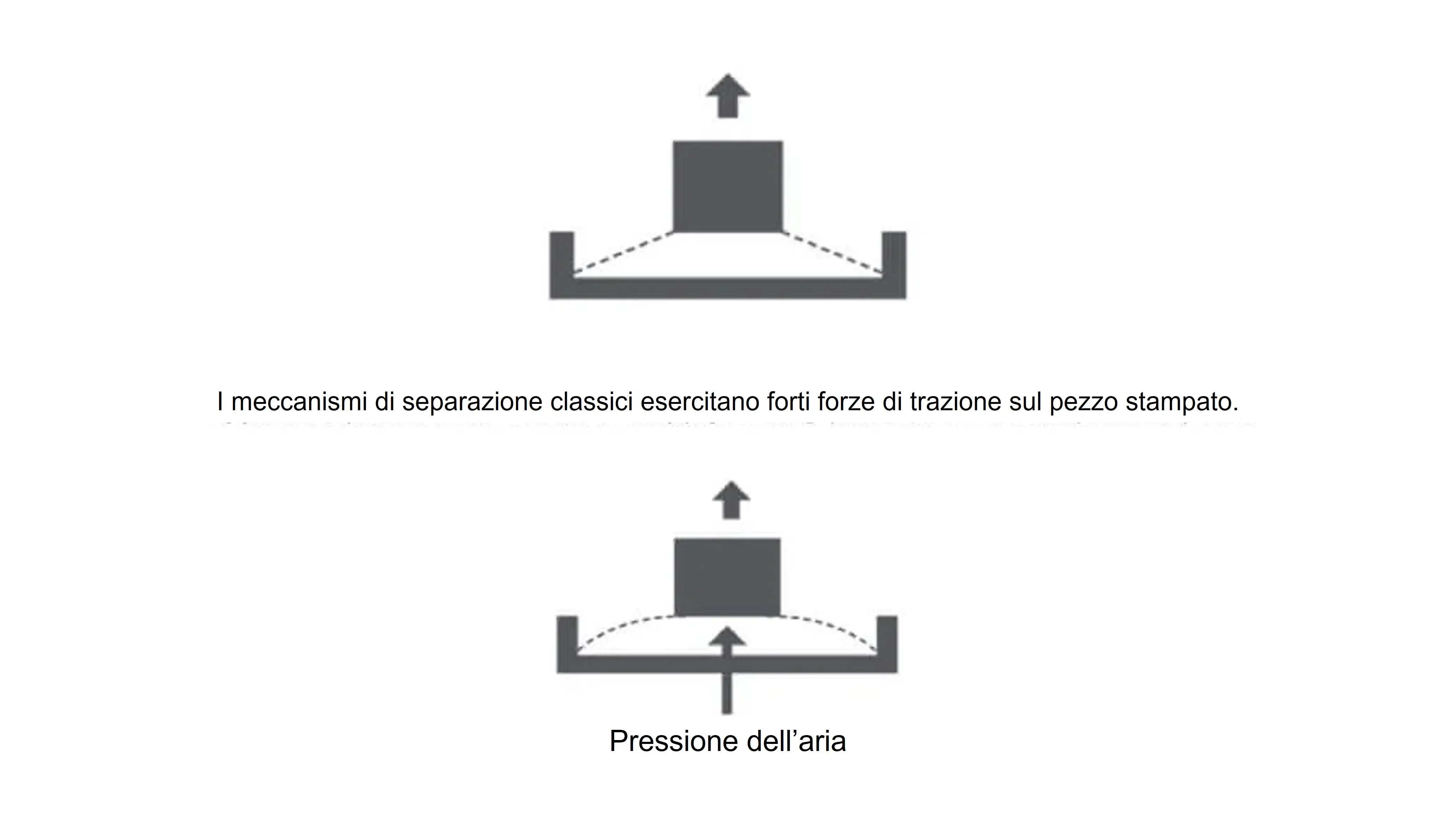 Il metodo pneumatico brevettato P3 applica una forza di separazione che stacca gradualmente il nuovo strato dalla membrana, invece di rilasciare l'intero strato in una sola volta.
