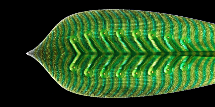 El paquete de investigación PolyJet de Stratasys fue el giro definitivo que abrió el camino a la investigación sobre impresión líquida realizada por Ross Stevens y Nicole Hone llamada Polyphytes. Polyphytes utiliza la impresión líquida para crear modelos fluídicos que funcionan como sistemas vasculares en las plantas. “El proyecto demuestra las cualidades dinámicas de la impresión 4D mediante la creación de impresiones 3D que pueden funcionar y cambiar su estética a medida que varios medios fluyen a través de sus canales internos: agua, aire, humo, azúcar glas, mezcla de burbujas y jabón”. Nicole añadió: “Los diseños están modelados por procedimientos para crear texturas y colores intrincados y orgánicos. Esto aprovecha la capacidad de la J850 para imprimir en alta resolución a escala microscópica. Los efectos físicos que se ven en la película evocan la belleza de la polinización natural y el transporte de nutrientes en la vida vegetal”.